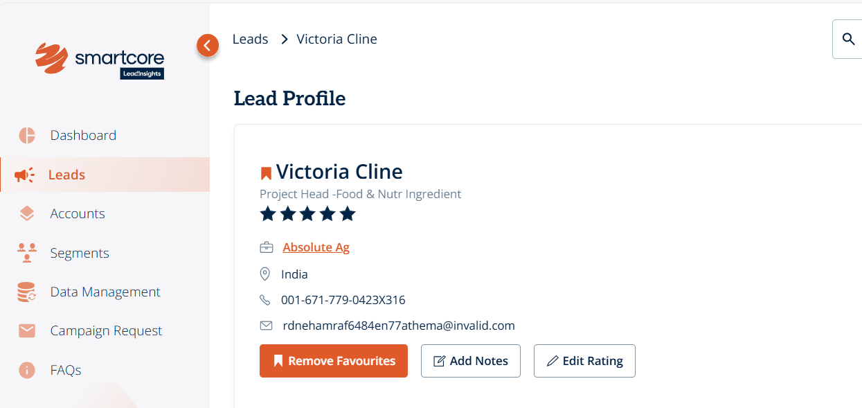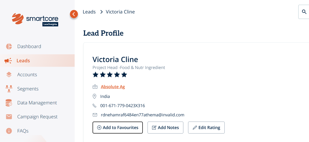 You can mark a lead to your favourites for faster access and future outreach, via both the Leads page and an individual lead’s profile page.