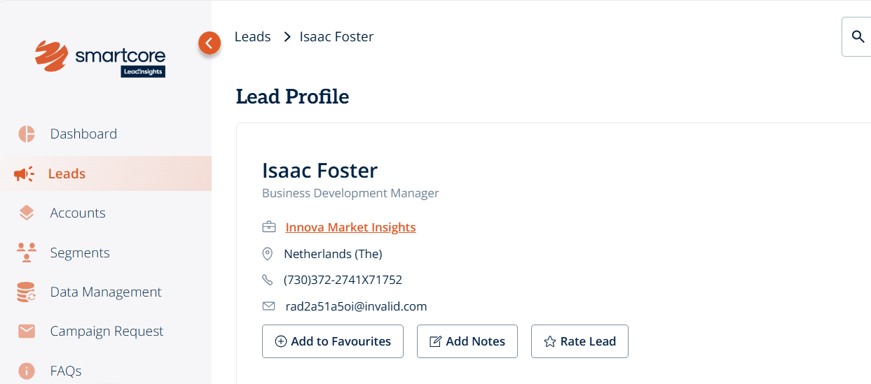 Click on the name of an individual lead to open their profile page