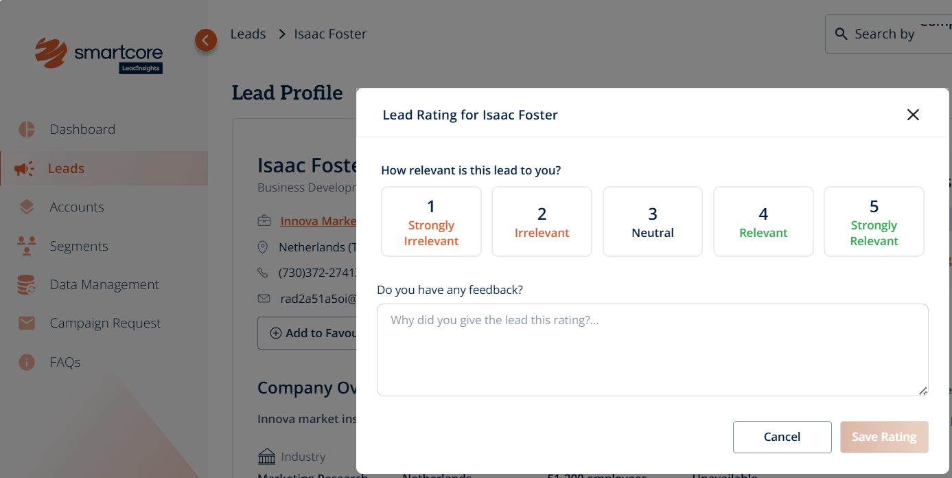 At the top of the profile, click “Rate Lead”