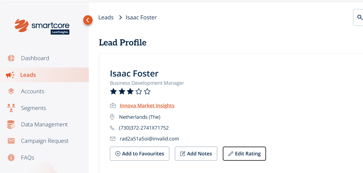 Once saved, the star rating (1-5 stars) will appear under the lead’s name.