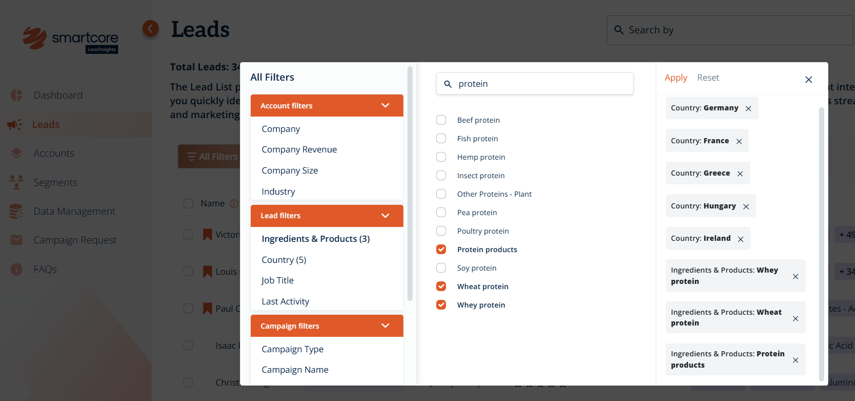 Click “Apply” to see your updated list of leads, tailored to your selected filters