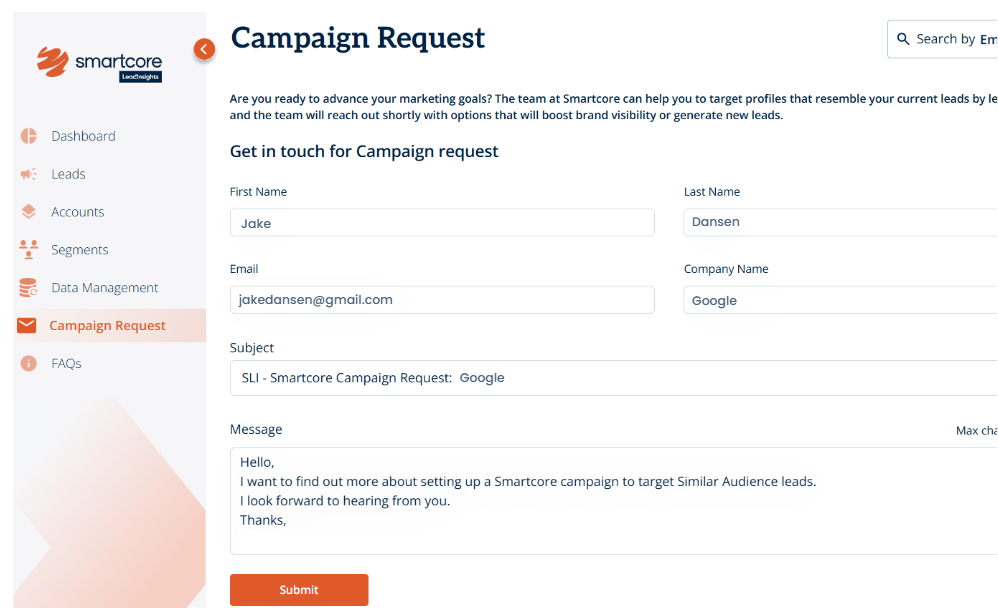 - Submit a Campaign Request: Simply put forward your request by selecting campaign request in the left-hand menu (see screenshot) to target these high-potential leads.