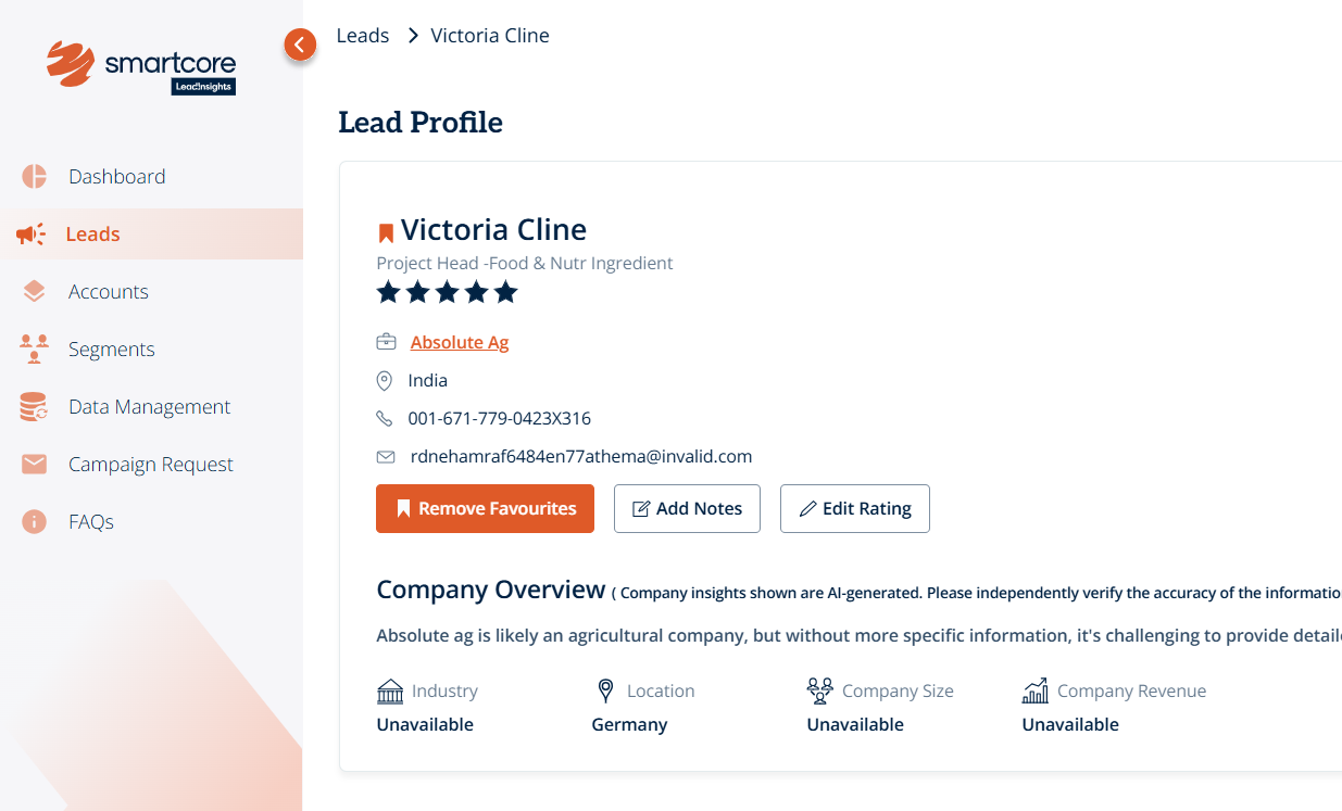 Action: Select a lead and review their Topic of Interest (such as preferred content type or topics). Use these insights to draft personalised outreach messages tailored to their interests.